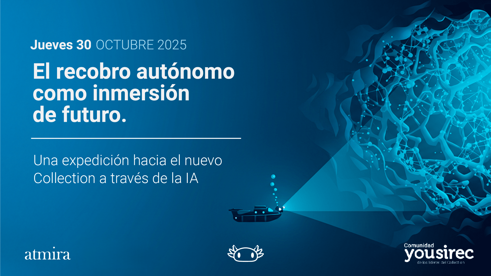 La elección de la metáfora no es casual. Como en una inmersión submarina, los asistentes descenderán progresivamente hacia las profundidades de la IA aplicada al Collection: desde una visión panorámica del sector hasta el contacto directo con agentes de IA que ya están operativos en el mundo del recobro.